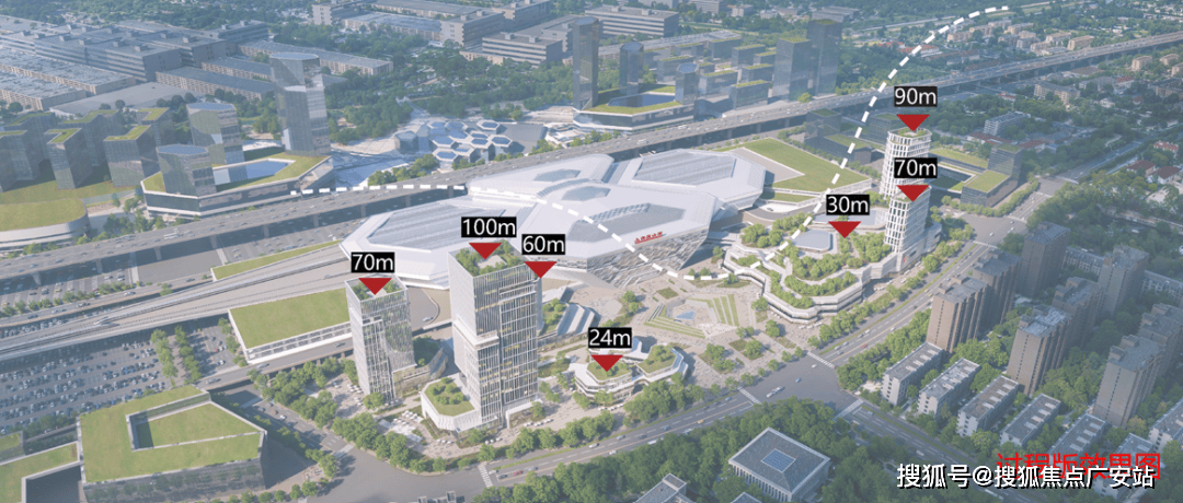 高铁宝山站枢纽总建筑面积约48万㎡,其中,站前广场建筑面积约39万㎡,含酒店、办公、商业综合服务等业态。