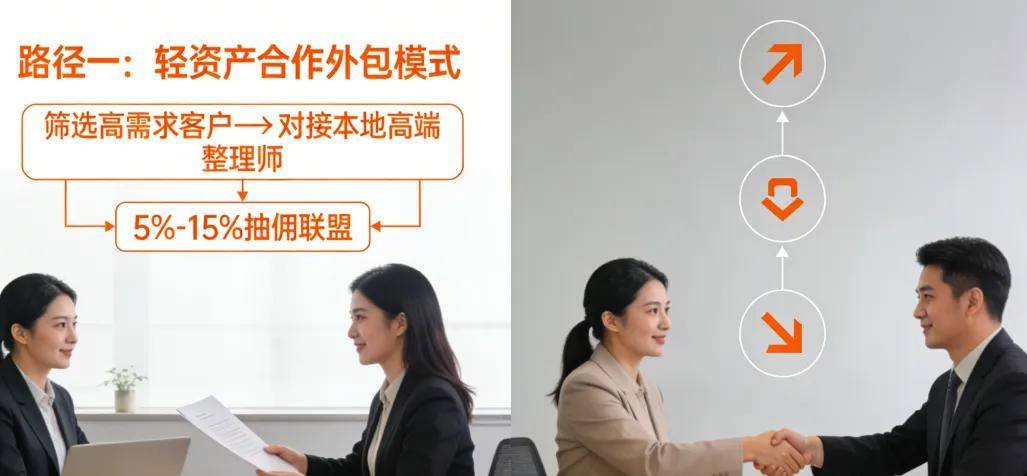 从现有客户中筛选潜在高需求客户(如大户型、对现状不满、消费能力强的家庭),将需求线索对接给本地成熟的、处于“小而美”层级的高端整理师或团队。