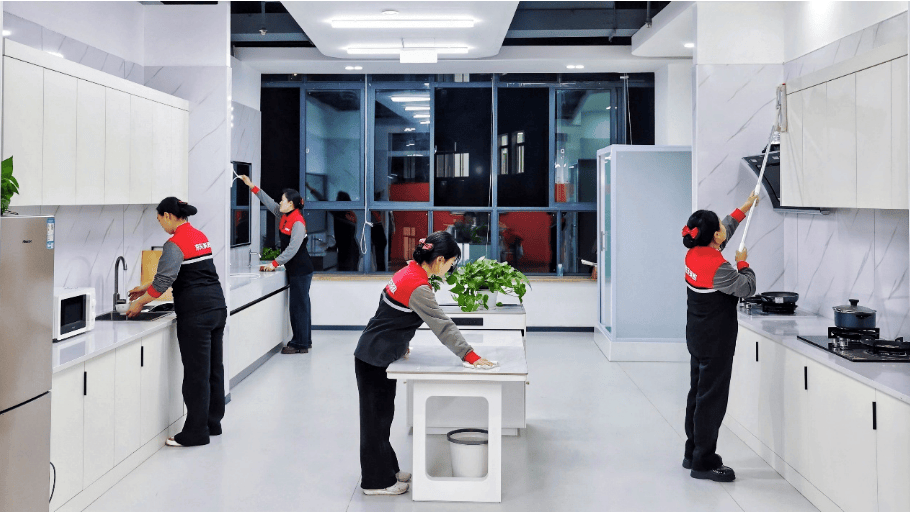 认证:完成理论培训、实操训练及“1+1老带新”试单考核,考核通过方可持证从业,实现“持证上门”服务标准;培训中还设立行业技能大赛,配套竞赛指导与专项突破,助力保洁师精进技能达到顶尖水平。