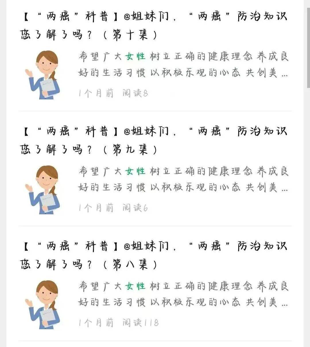 (四)妇女健康关爱加码。通过微信公众号等新媒体平台推送“两癌”防治、健康科普等知识100余期,开设“健康饮食”线期。推动“免费为适龄妇女提供两癌筛查”纳入2025年介休市政府民生实事,为1名低收入患病妇女争取救助金1万元,为35名妇女捐赠义乳及配套文胸,构建健康关爱与救助帮扶相结合的服务体系。