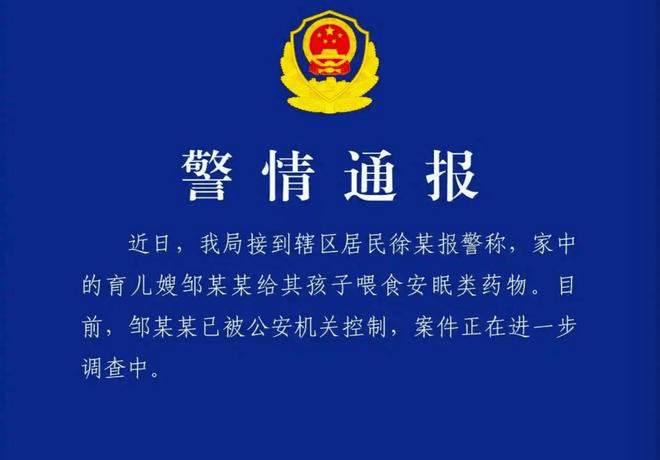 易游体育,易游娱乐,易游体育官网,易游,易游体育官网,易游体育网址,易游体育网站,易游体育入口,易游体育注册,易游体育下载,易游体育app,易游app,易游官方网站2026年1月2日,浙江金华警方发布警情通报,披露的内容竟然是一名育儿嫂邹某某因给徐女士的孩子喂食安眠药,被当地公安机关控制,目前案件正在调查。