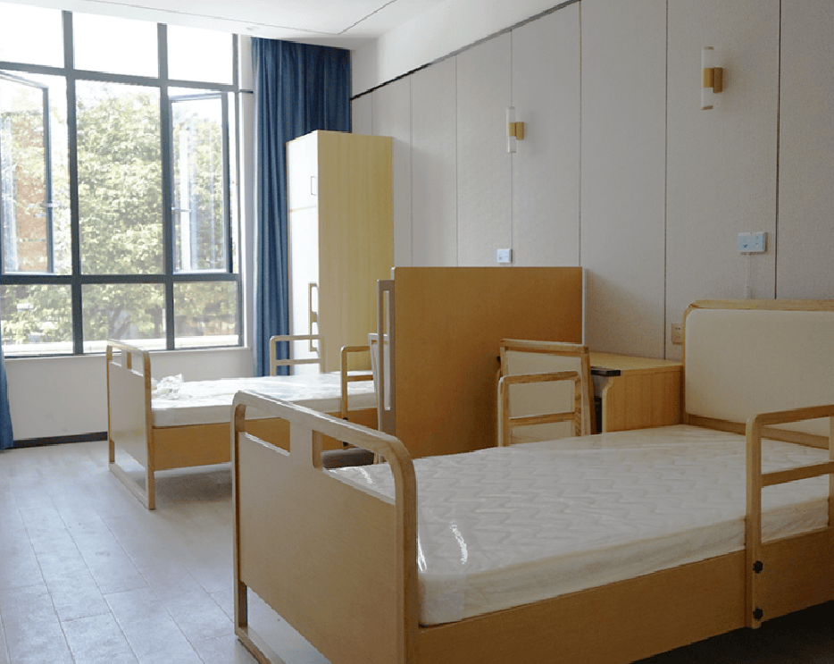 中心建筑面积达5145平方米,内部功能分区科学合理。居住区提供单人间、双人间及双人套间,面积从30至50平方米不等,每间房均配备护理床、独立卫生间、防滑地板及紧急呼叫系统,床头一键呼叫按钮与房间无障碍扶手形成双重安全保障。公共区域则以“安全、便利、舒适”为原则:走廊宽度达1.8米,电梯内设低位按钮与语音提示,多功能厅座椅配备扶手与可调节靠背。屋顶花园采用无障碍设计,铺设健身步道并设置休憩座椅,种植四季花卉,成为长者晨练社交的热门场所。
