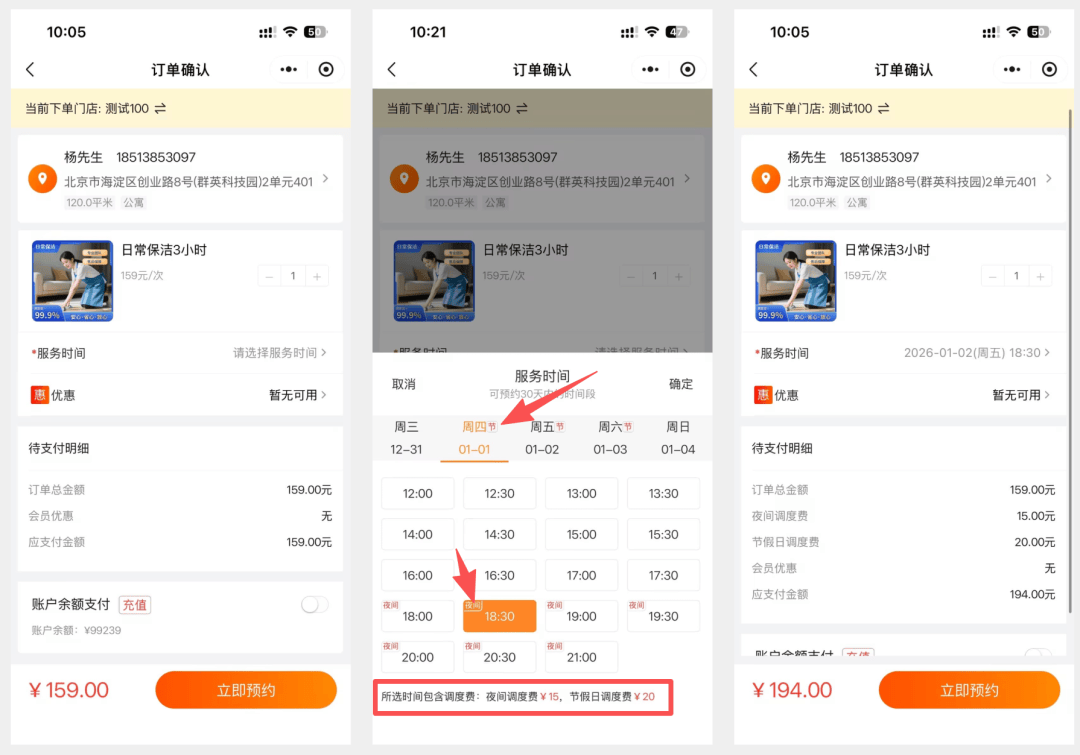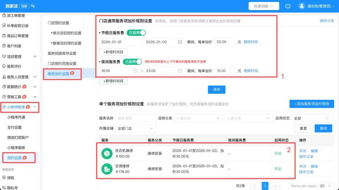 规则一旦设定,当客户在小程序上预约该时段服务时,页面会自动、清晰地显示包含调度费在内的总价,价格透明,提前达成共识。