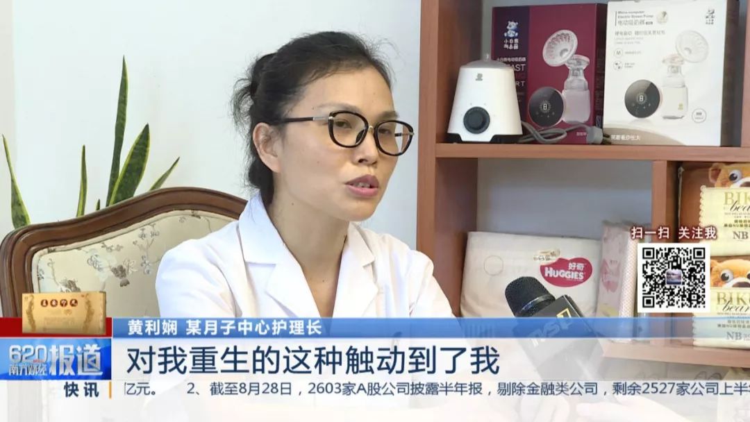 某月子中心护理长 黄利娴:“当时因为家庭的变故,就是死里回生的那种,对我重生的这种触动到了我,然后当时在想怎么样把自己剩下余生的力量贡献社会,能够带给人们一些欢乐。”