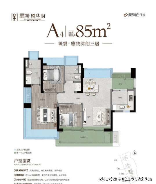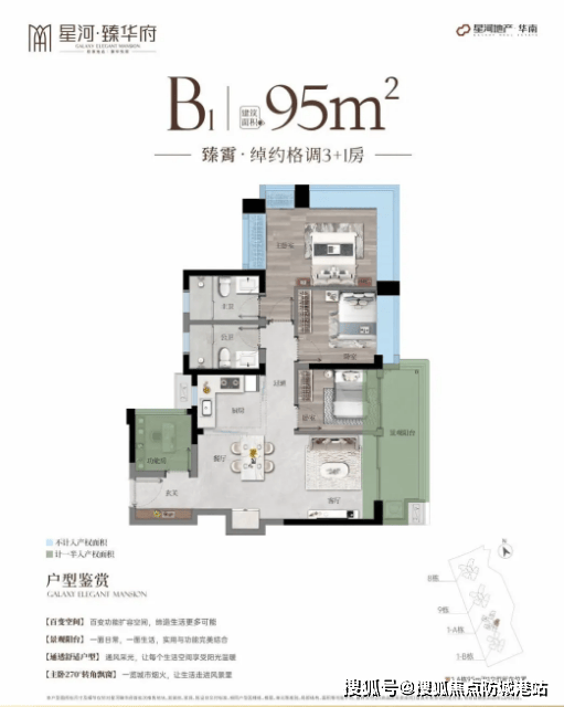 梯户比规划为2梯4户、2梯5户,保障业主上下楼的便捷性,减少等待时间;物业公司为星河旗下的星河智善物业,物业费为3.1元/㎡·月,依托星河多年的物业服务经验,为业主提供全方位、精细化的社区管理服务,守护日常居住品质。产品方面,项目主打建面约85-95-㎡的三到四房户型,覆盖刚需、刚改等不同家庭的居住需求。