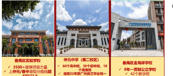 广州市番禺区金海岸实验学校(原广州市番禺仲元实验学校)为九年一贯制学校,紧邻小区,步行仅需3分钟。学校创办于2004年8月,现有77个班级,师生及教职工共3500多人,环境怡人,教学设备先进。建校以来,中考平均分和高分率均居番禺区前列,上仲元、番中录取分数线%,上提前批高中考生占比超90%,每年均获区毕业班工作评比一等奖,荣获多项市级、国家级荣誉。