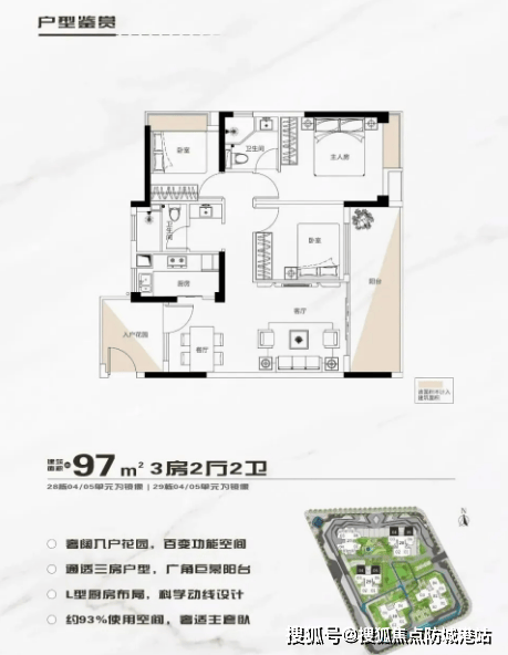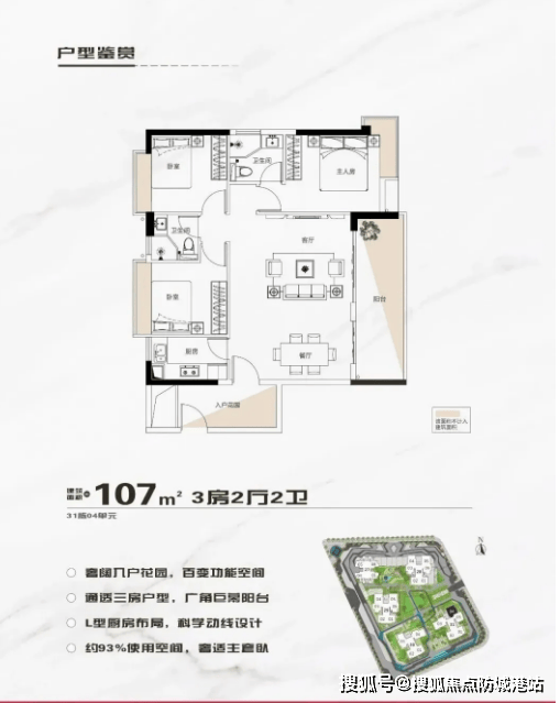 F户型(建面约92㎡,3房2厅2卫):户型方正实用,动静分区合理,空间利用率高,无浪费面积。超大宽面阳台连接客厅,城市风华与社区美景一览无余,采光通风效果极佳。U型厨房设计,操作空间充足,洗、切、炒动线流畅,为烹饪提供便利。主卧带转角飘窗,奢享270°开阔视野,搭配独立卫生间,保障业主隐私与居住舒适度,适合刚需改善型家庭。