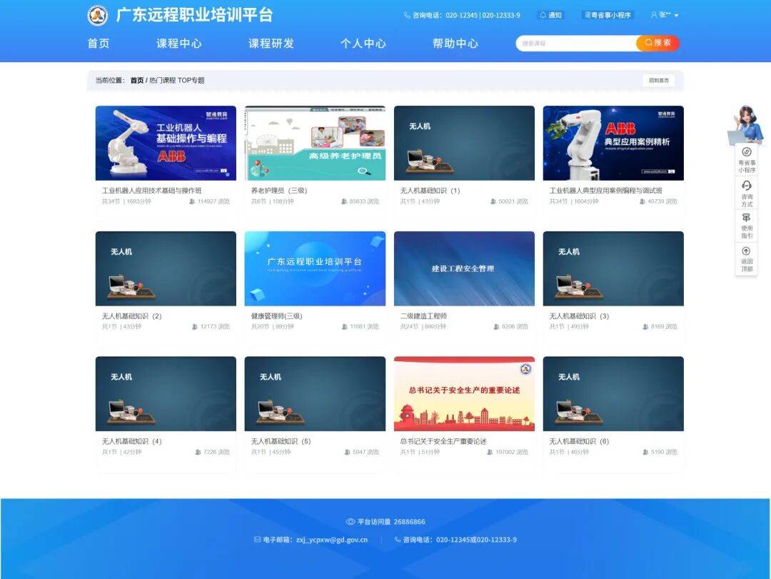 改版后平台设置重点专区、重点专项、紧缺工种、通识课程、热门课程等五个栏目,汇集智能制造、信息技术等14个大类57个小类4393个优质线上培训课程资源,有效对接广东产业需求与就业导向,助力学员“所学即所用”。