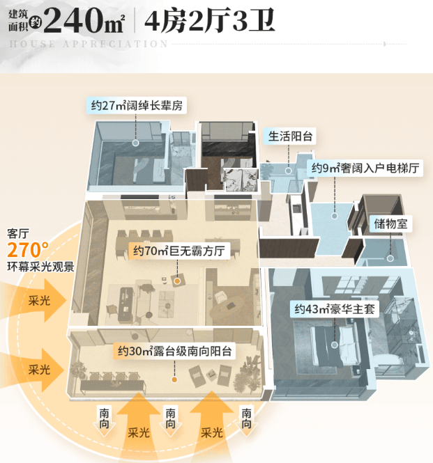 值得一提的是,项目于2025年10月31日开放了240㎡云山天幕美学样板间,通过实景空间的沉浸式呈现,让大家能直观感受到该户型的设计布局与270°环幕视野,而且该户型单价达到10万元/㎡以上,属于高端改善房,稀缺性和价值都十分突出。对于追求顶奢居住体验、注重圈层质感的家庭来说,这个户型绝对是首选,既能满足居住需求,又能彰显身份和格调,而且稀缺性强,未来的保值增值空间也很大。