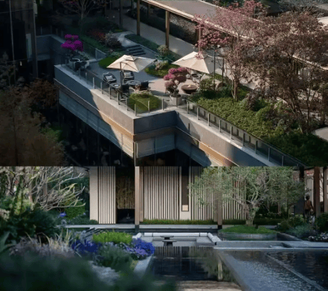 社区内部的园林景观也十分用心,邀请了亚洲顶流景观设计师塔瓦才·科博凯奇亲自操刀,打造了约1.2万平方米的实景园林,汲取泰国顶奢四季酒店的生态灵感,与白云山的在地风貌完美融合,以立体形制呈现森系水韵,步入园林中庭,繁花森谷、叠水飞瀑,移步易景,仿佛置身于天然氧吧,茶余饭后带着家人散步、遛娃,或者自己找个安静的角落看书、放松,都是一种享受。